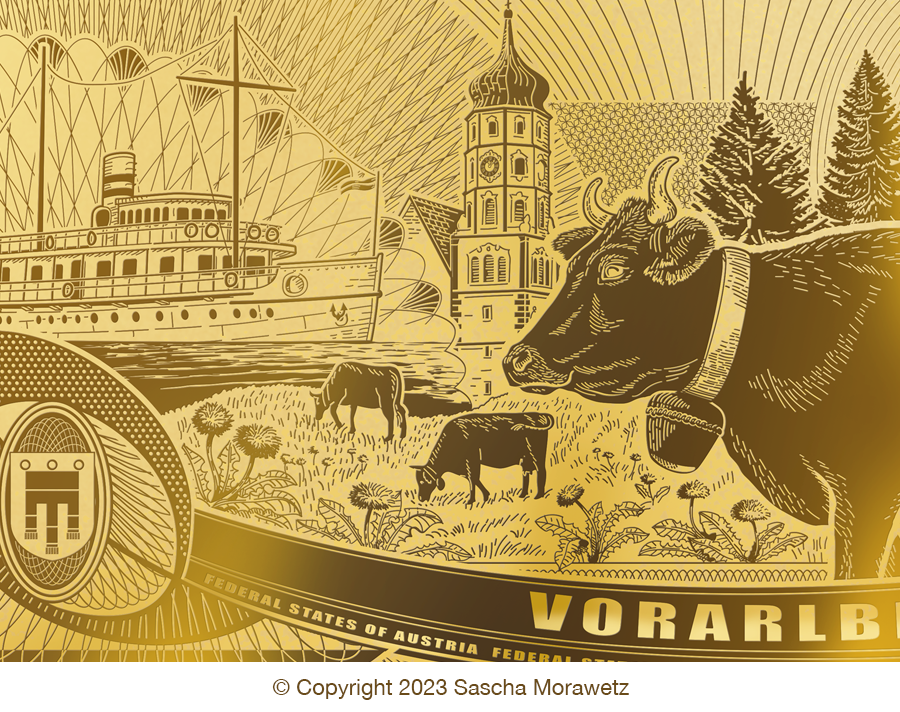 Prägevorlagen für Goldnoten. Auftragsarbeit für das IMM-Münz-Institut aus Österreich. Erschienen im Jahr 2023.