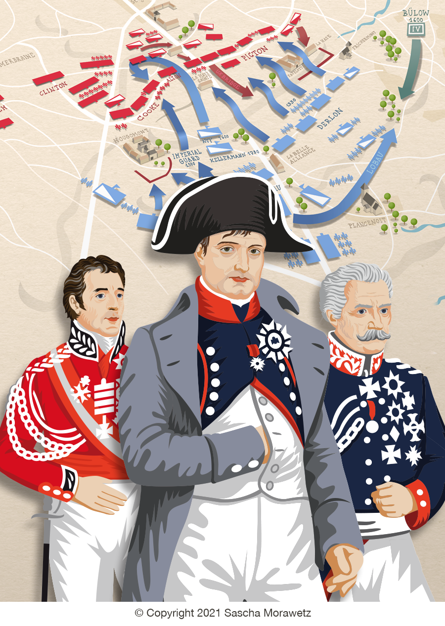 Darstellung verschiedener Persönlichkeiten der Schlacht von Waterloo. Die Illustrationen dienen zur Bedruckung und Prägung einer Münz-Sonderausgabe. Auftragsarbeiten für die MDM Münzhandelsgesellschaft.